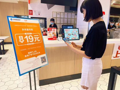 顾客在乡村基门店使用“建行生活”扫码“减单”。