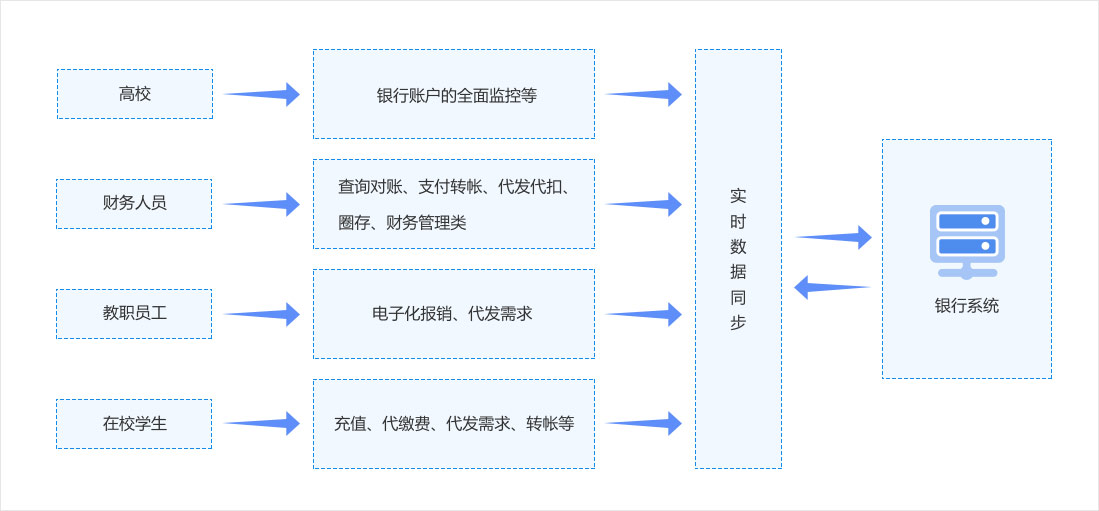 随着教育行业的不断规范化,高校对于财务管理信息化、自动化的需求越来越迫切,财务人员、教职员工、在校学生客户资源庞大、服务场景丰富,资源优化价值不断放大。
