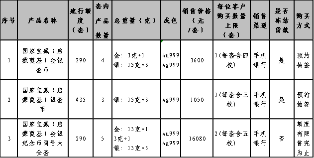 1.应有关要求,本次贵金属纪念币面向实名客户销售,国家宝藏(启蒙奠基)金银纪念币同号大全套不限制客户星级,产品额度有限,售完即止。其余各规格采用“预约抽签”方式确定可购买的客户。本产品对应的每位客户购买数量上限等请见本公告第一条中“具体产品信息”内容。